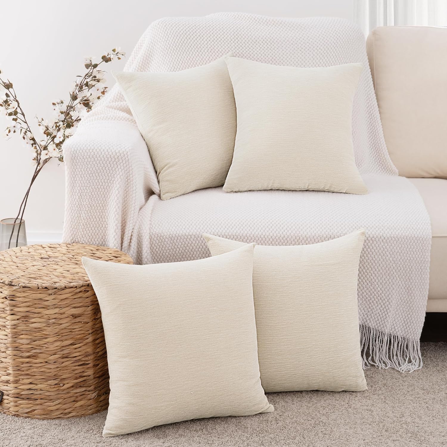 Premium Chenille Blend Fabric :4 pcs Throw Pillow Covers (NO INSERT) made from a high quality chenille blend that ensures considerable thickness and durability. Luxurious plush textured pillow covers retain their shape and rich texture even after extended use and feel soft and cozy to the touch.
