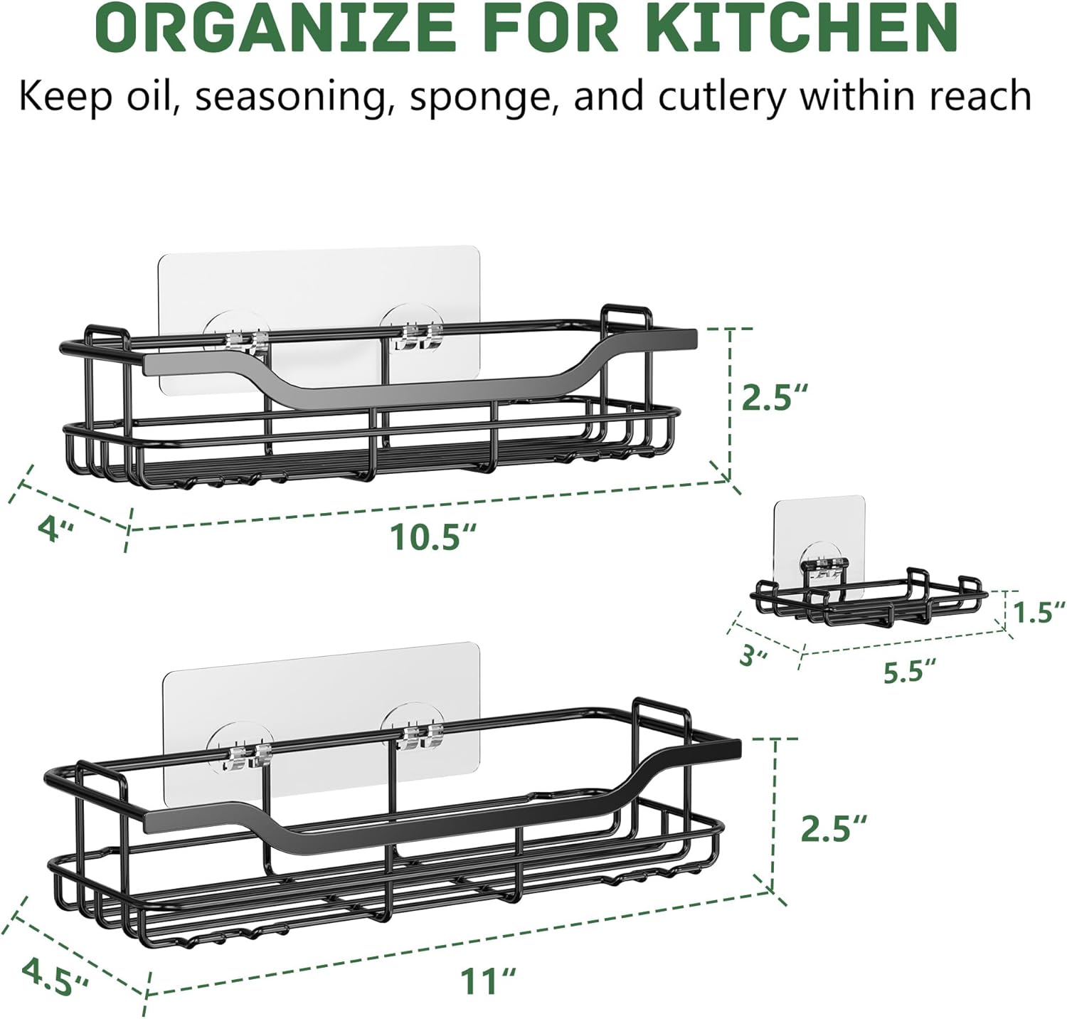 3-Pack Shower Caddy Set: It comes with 2 shower shelves and 1 separate soap holder, design with 8 hooks. This shower organizer set can hold various sizes of conditioner bottles, soap, sponges, combs, body scrub, shavers, loofahs, towels