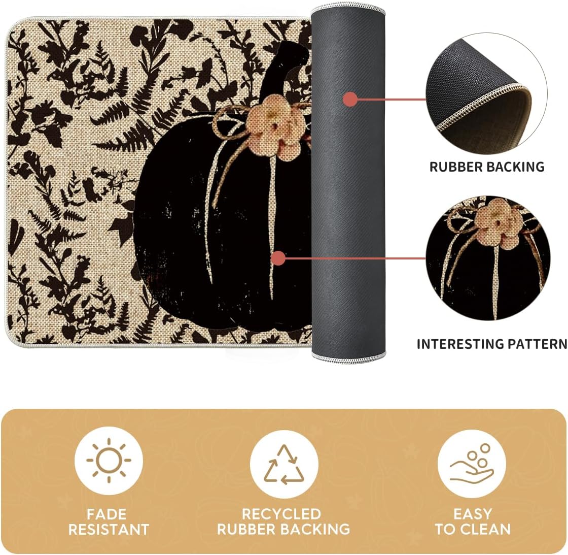 DURABLE AND NON-SLIP : Backed with non-slip recycled rubber and topped with polyester felt that is low-profile to reduce chances of tripping, high-quality durable construction that is stain resistant