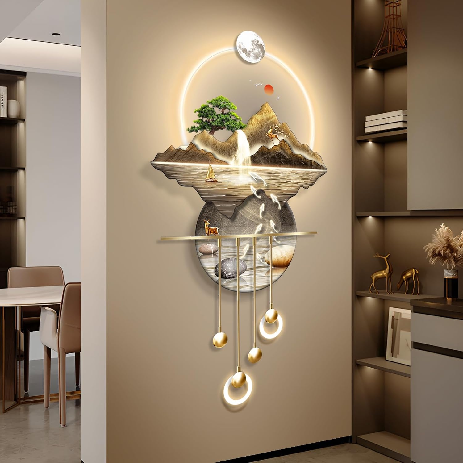 Art decor That Means Something: Featuring iconic elements like majestic mountains, peaceful rivers, and graceful wildlife, this modern wall sculptures led light, symbolizes harmony, peace, and our connection to nature. It’s more than decor — it’s a meaningful centerpiece that **sparks reflection and conversation.