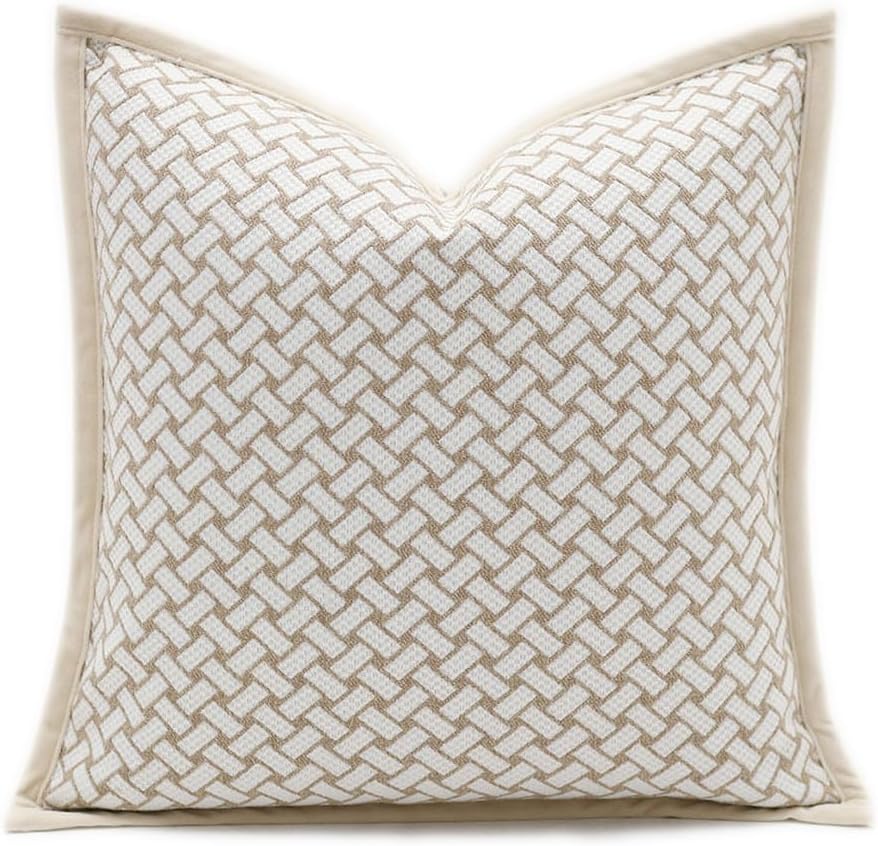 18×18” Inches Throw Pillow Cushion Cover – Grid Pattern Chenille Jacquard Embroidery Luxury Modern Style Couch Sofa Pillow for Living Room Bedroom