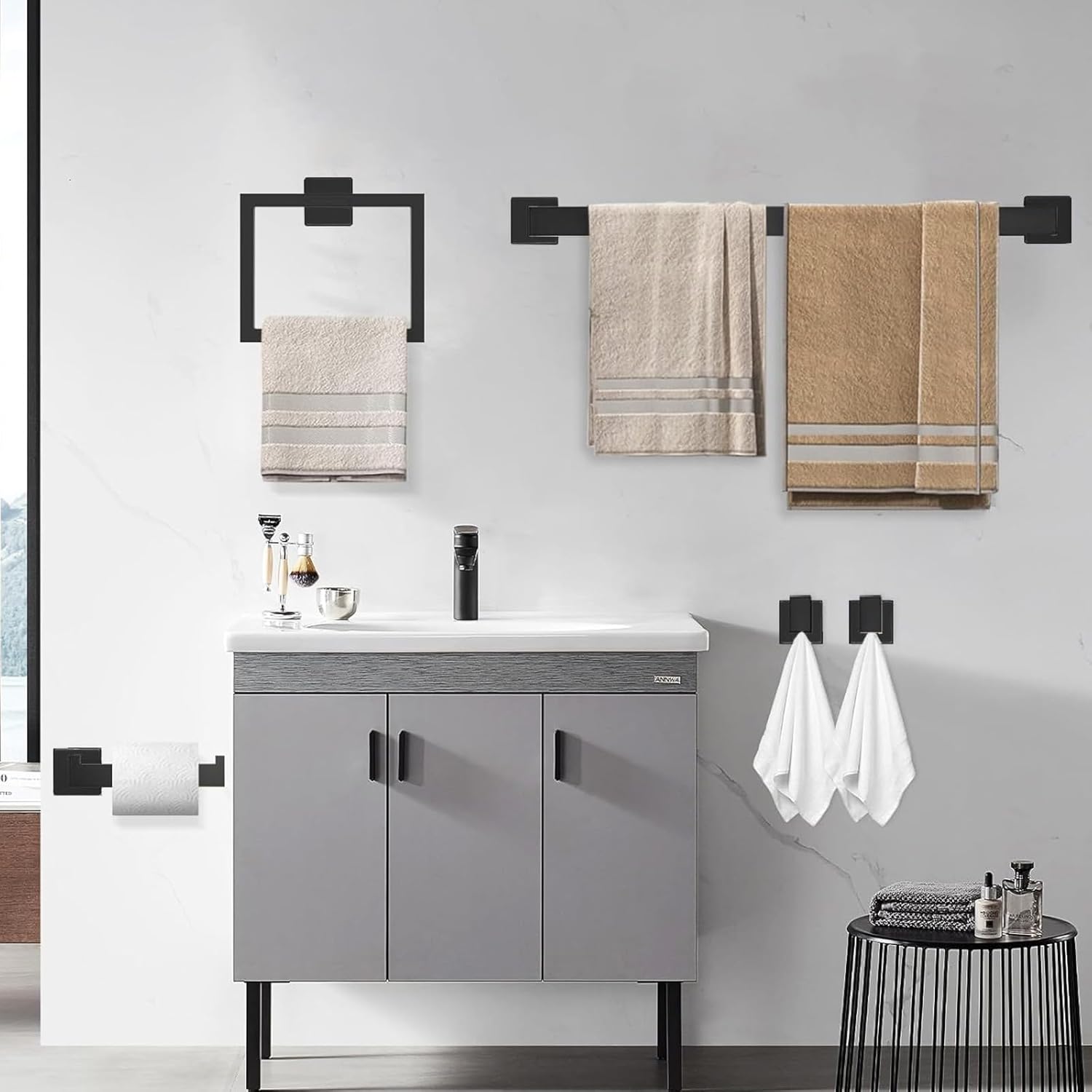 Modern Sleekly Towel Rack Set: The matte black bathroom accessories set can be paired with many different styles of bathrooms for an elegant and timeless look. The concealed screw design makes the product look more beautiful, modern and tidy