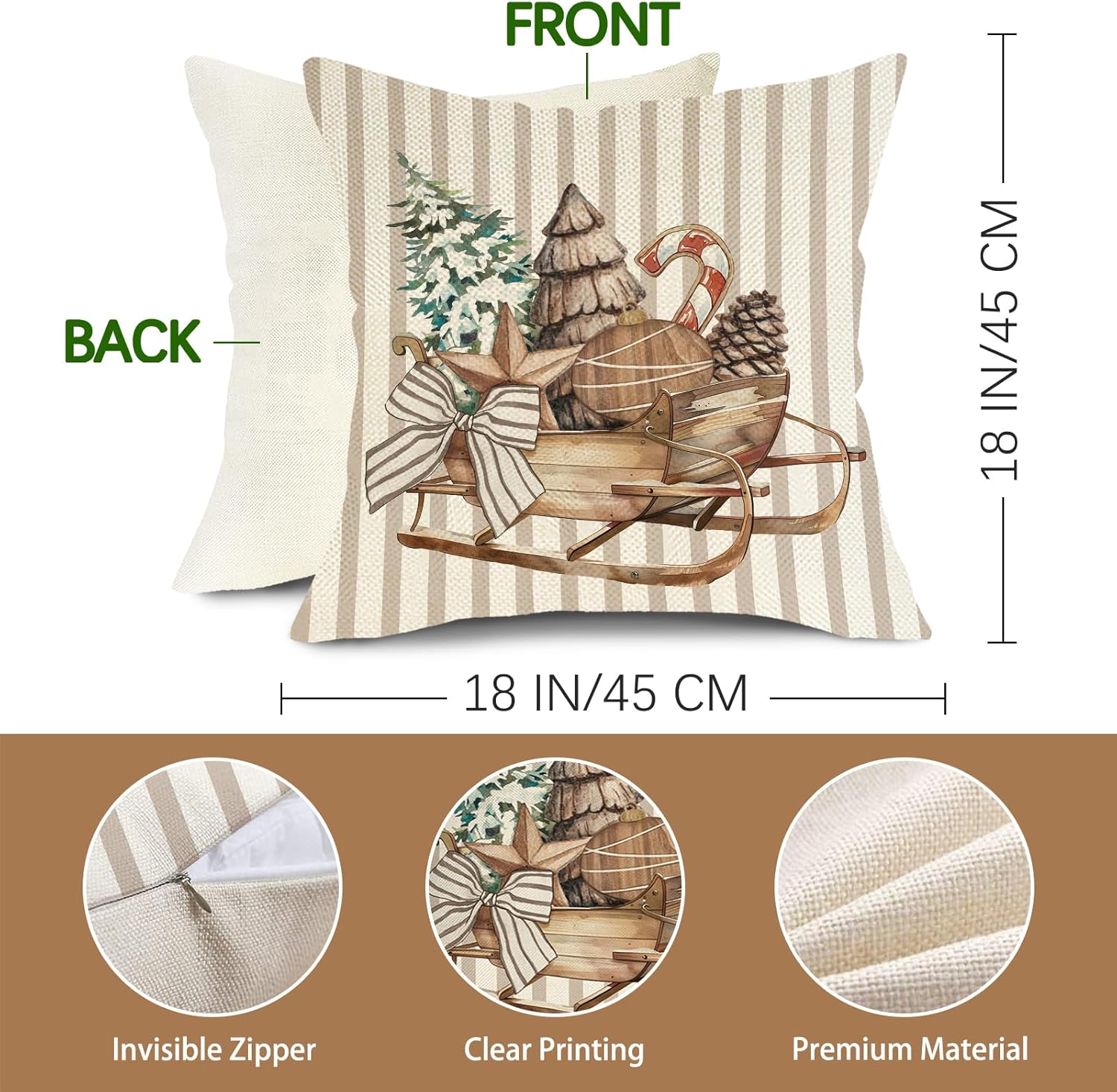Special Pattern: Comes with 4 packs, these 18 x 18 inches decorative pillow covers are single-sided printed with vivid pine trees, snowflakes, balls, candy canes, stars, bows, pine cones patterns, which are suitable for Christmas home decorations