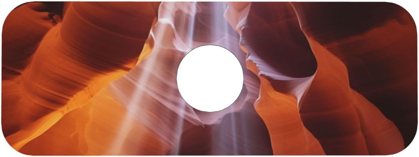 Faucet Splash Guard for Bathroom Counter Dimensions: 15″ x 5.5″ with a 2.5″ diameter faucet hole, this splash guard fits most standard faucets in kitchens, bathrooms, RVs, and more to keep clean and dry. The flexible material can be trimmed for custom fitting. Perfect sink accessories
