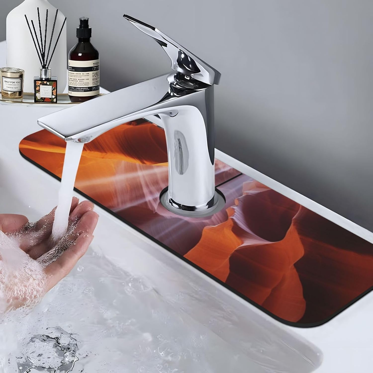 Super Water Absorption: Crafted with diatom mud, our faucet draining mat Sink Water Splash Guard Sink Protector Mat effectively absorbs water and prevents it from leaking onto your countertops, keeping them dry and protected from water damage. Give you a clean and beautiful kitchen