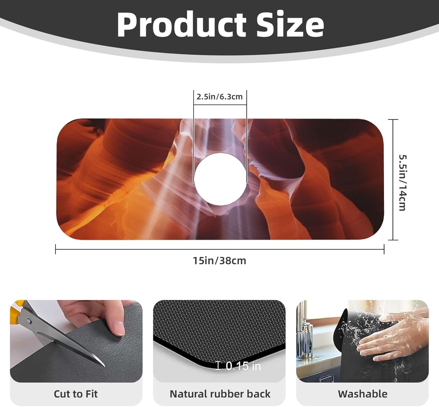 Easy Installation and Maintenance: Simply slide it around your faucet, and it stays firmly in place. Lightweight and easy to handle, the Kitchen Sink Mat Sink Faucet Mat with Faucet Water Catcher Mat requires minimal cleaning and dries quickly, freeing you from constant countertop wiping