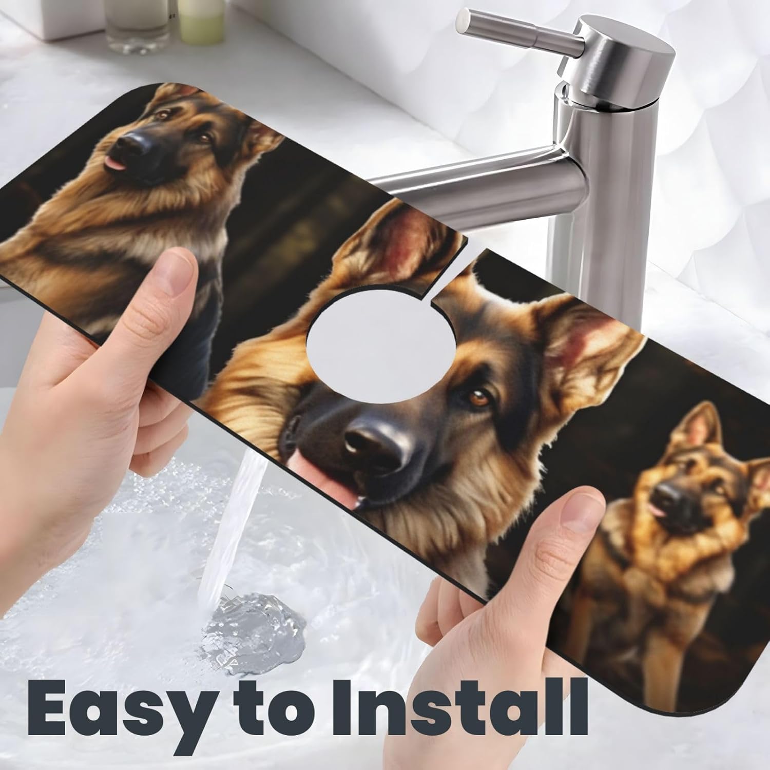 German shepherd Faucet Mat for Kitchen Sink Splash Guard Super Absorbent Diatomite Fast Drying Faucet Suction Pad, Non-Slip, Washable Sink Mat Gadgets for Bathroom 15 x 5.5 Inch