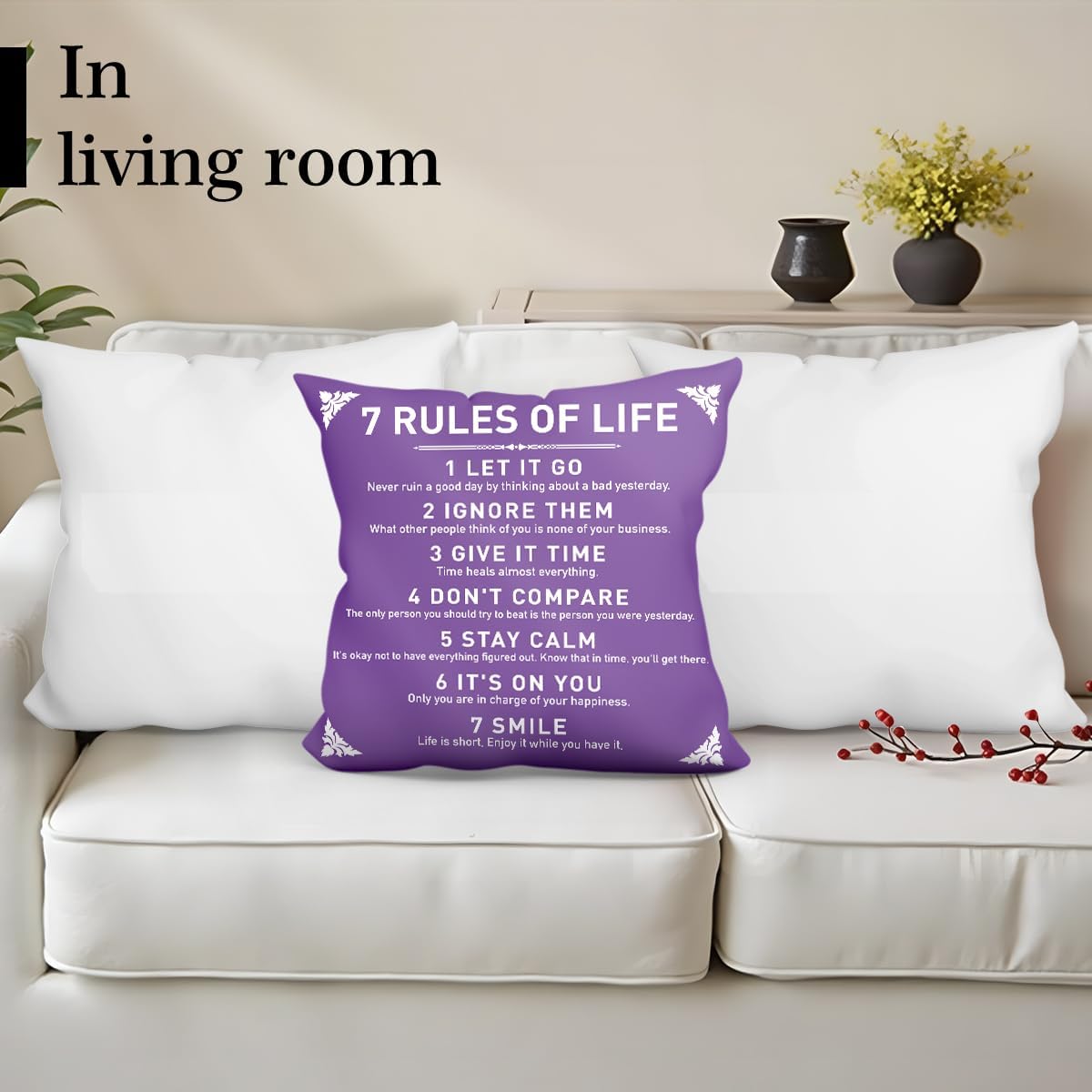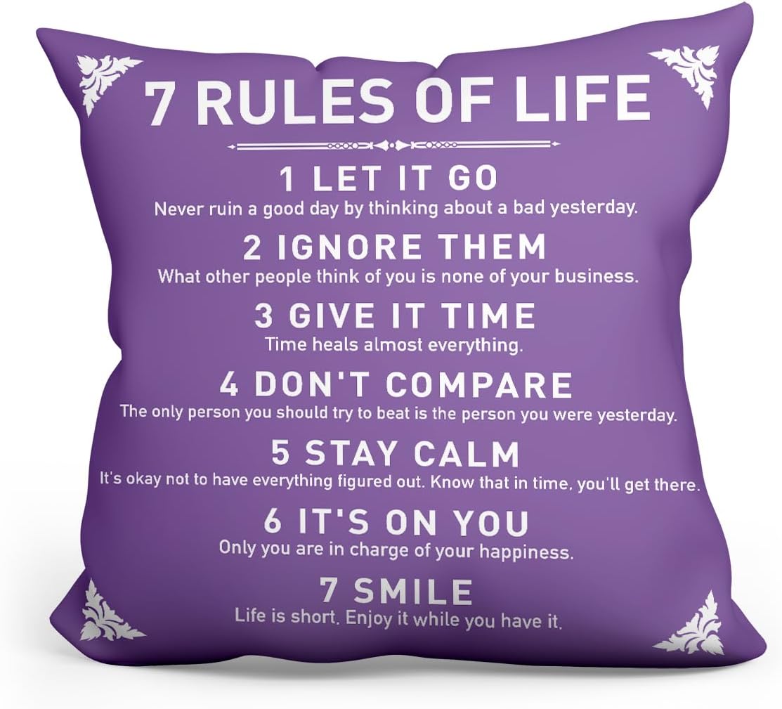 Customers find the pillow cover to be of good quality and appreciate its message, with one mentioning it serves as a great reminder of life’s rules. The product is durable, with one customer noting it hasn’t faded over time.