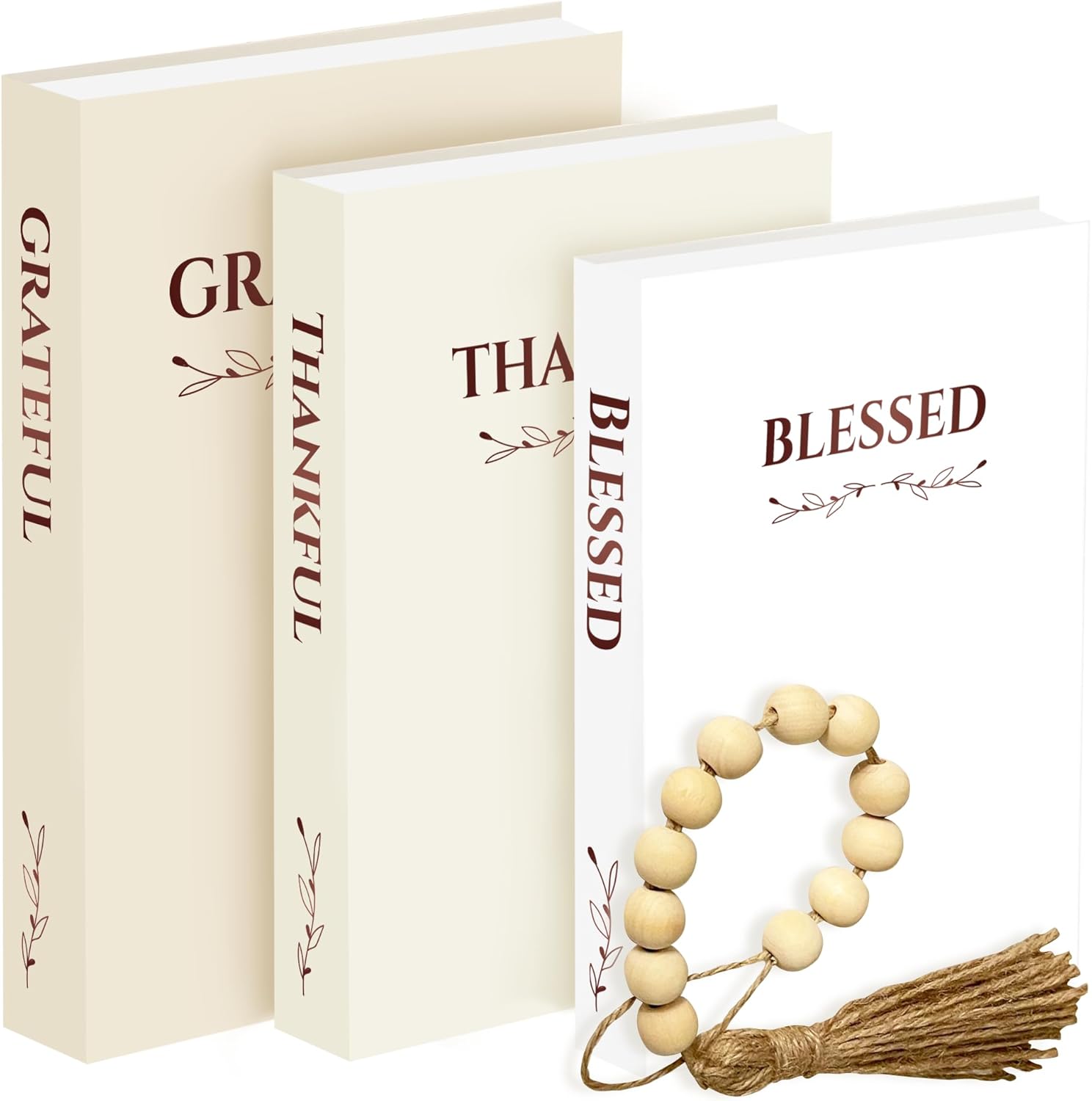 Set of 3 Decorative Books with Wooden Bead Garland – Stylish Home Décor Accent Elevate your interior design with this stunning set of 3 decorative faux books, accompanied by a beautiful wooden bead garland. Perfect for adding a touch of charm and sophistication to any space, this set is designed to enhance your coffee table, bookshelves, or entryway décor. These books are not real reading books but are intended solely for decoration, making them a versatile and elegant addition to your home or office. Features: Premium Quality: Each book is made from durable materials, for look minimalist and modern aesthetic book decor. The neutral color palette ensures these books complement any style. Wooden Bead Garland: The set includes a delicate wooden bead garland, adding a rustic yet chic element. Its natural texture and tone make it the perfect pairing with the decorative books box. Customizable Arrangement: Stack the books horizontally or vertically, arrange them with the bead garland draped artistically, or pair them with candles, vases, or plants for a personalized display. Multi-Purpose Use: Ideal for staging homes, bookshelf accessories, decorating living rooms, bedrooms, offices, or gifting to loved ones on special occasions Make your home a haven of elegance and simplicity with this fashion books coffee table books set and bead garland. Click “Add to Cart” now to enhance your space today!