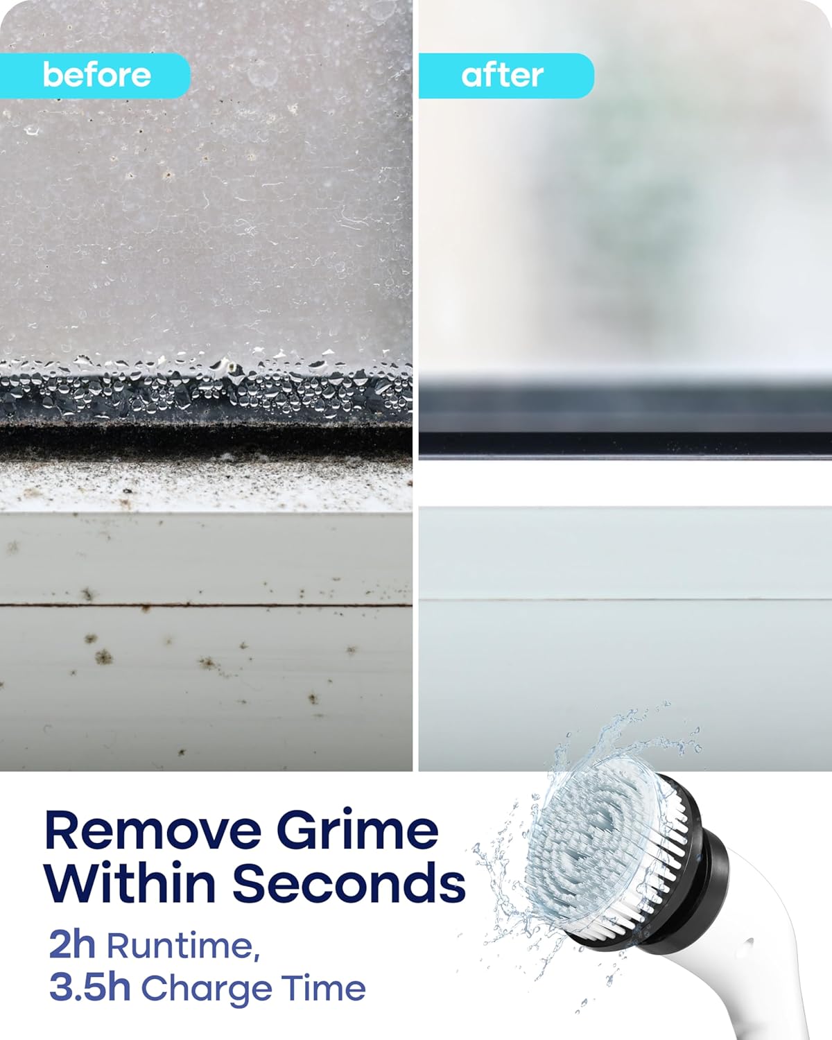 ✔ Powerful Cleaning with 2 Adjustable Speeds – Tackle tough grime and grout with a high-torque motor spinning up to 380 RPM. Choose between two speeds (300/380 RPM) to match any surface-from delicate glass to stubborn tile buildup