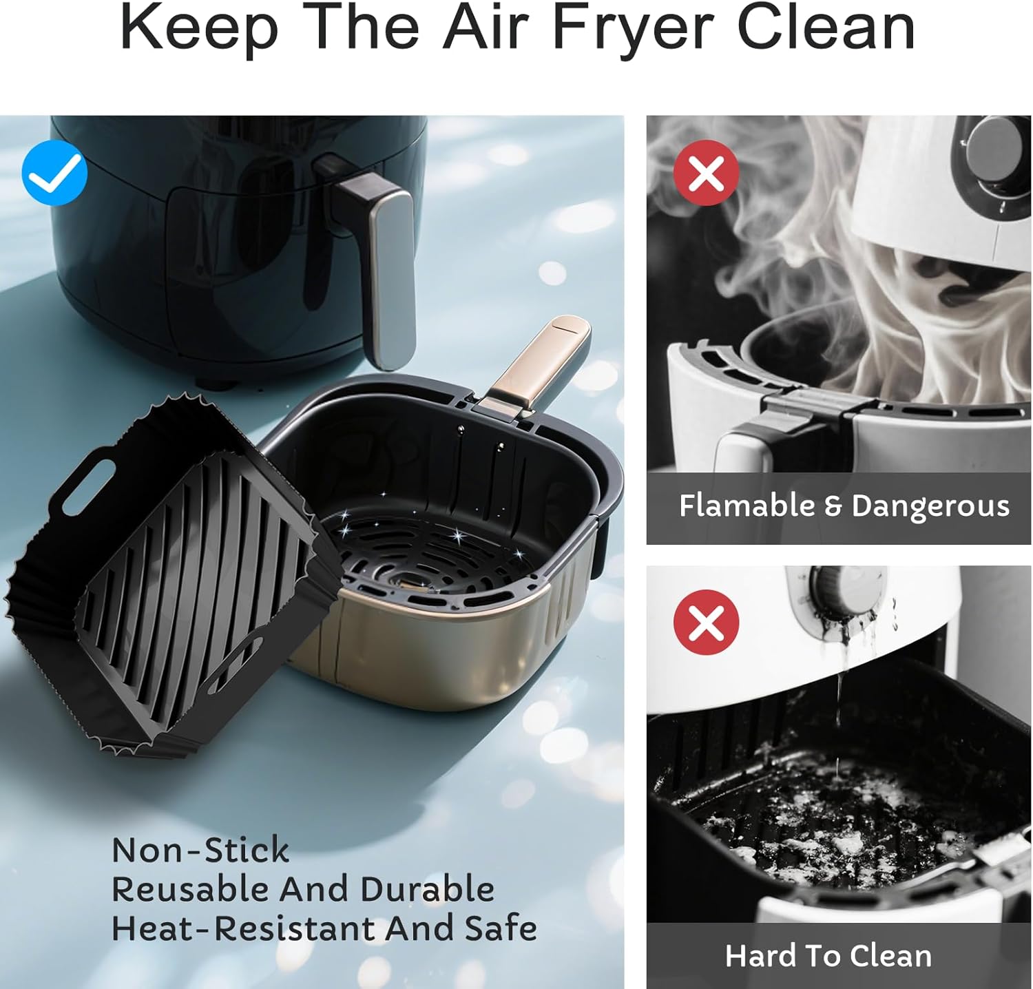 Non-Stick & Easy to Clean: Effectively protect the air fryer from food residue and extend the lifespan of the air fryer basket. The surface of the silicone air fryer basket liner is non-stick and easy to clean with water or in a dishwasher. Say goodbye to sticky and burned residue