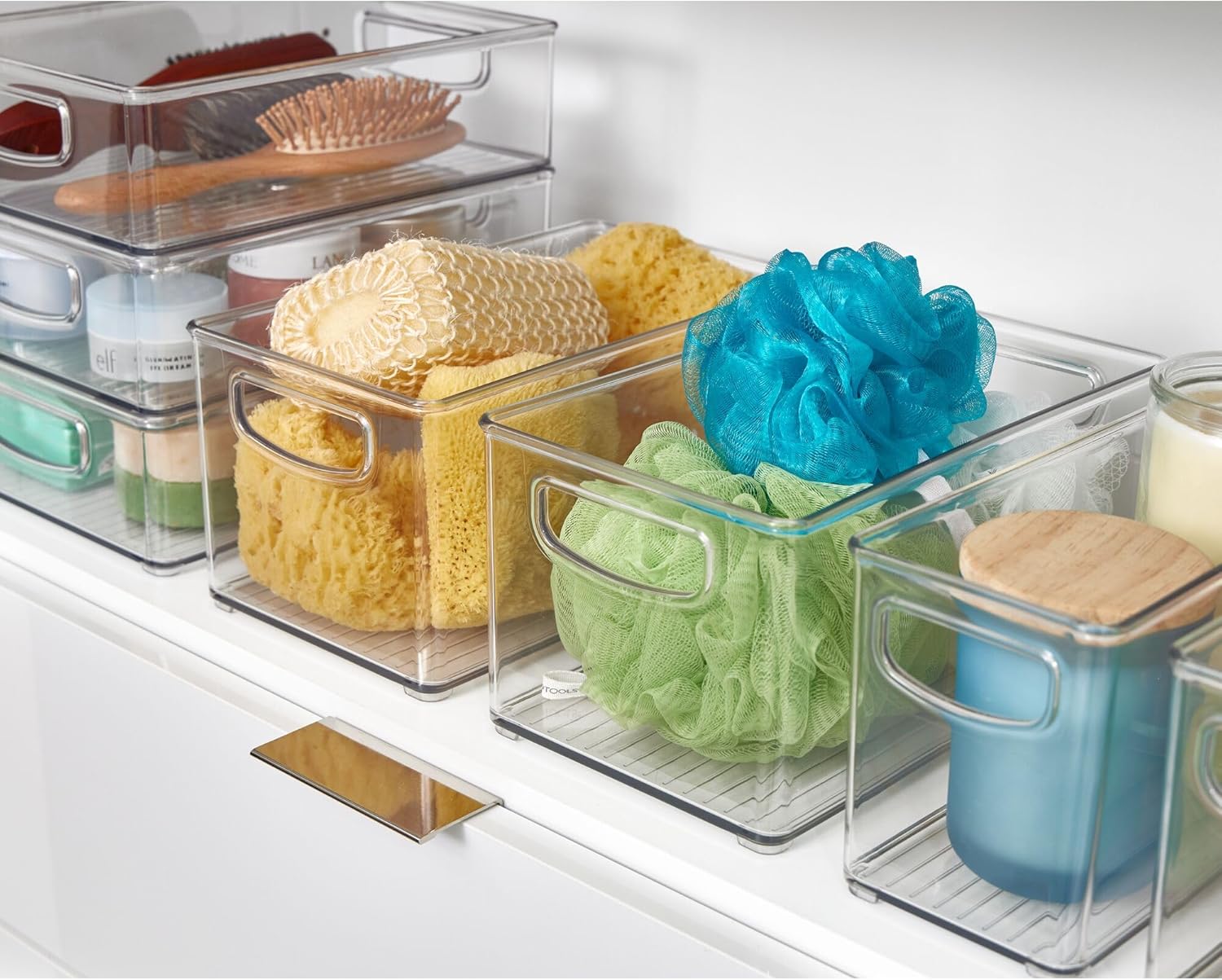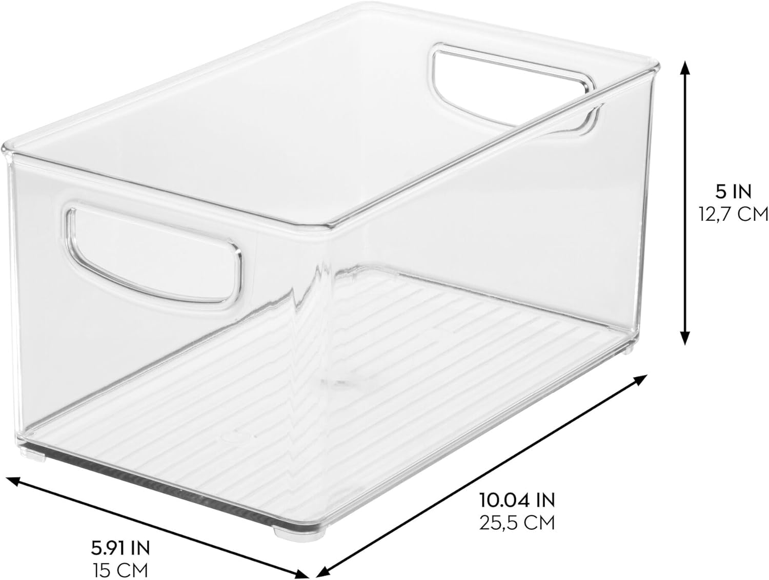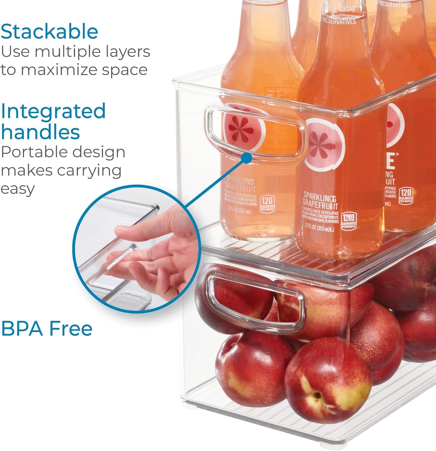 iDesign Stackable Pantry Bin with Handles for Cabinets, Fridge or Freezer, Clear, Made in USA