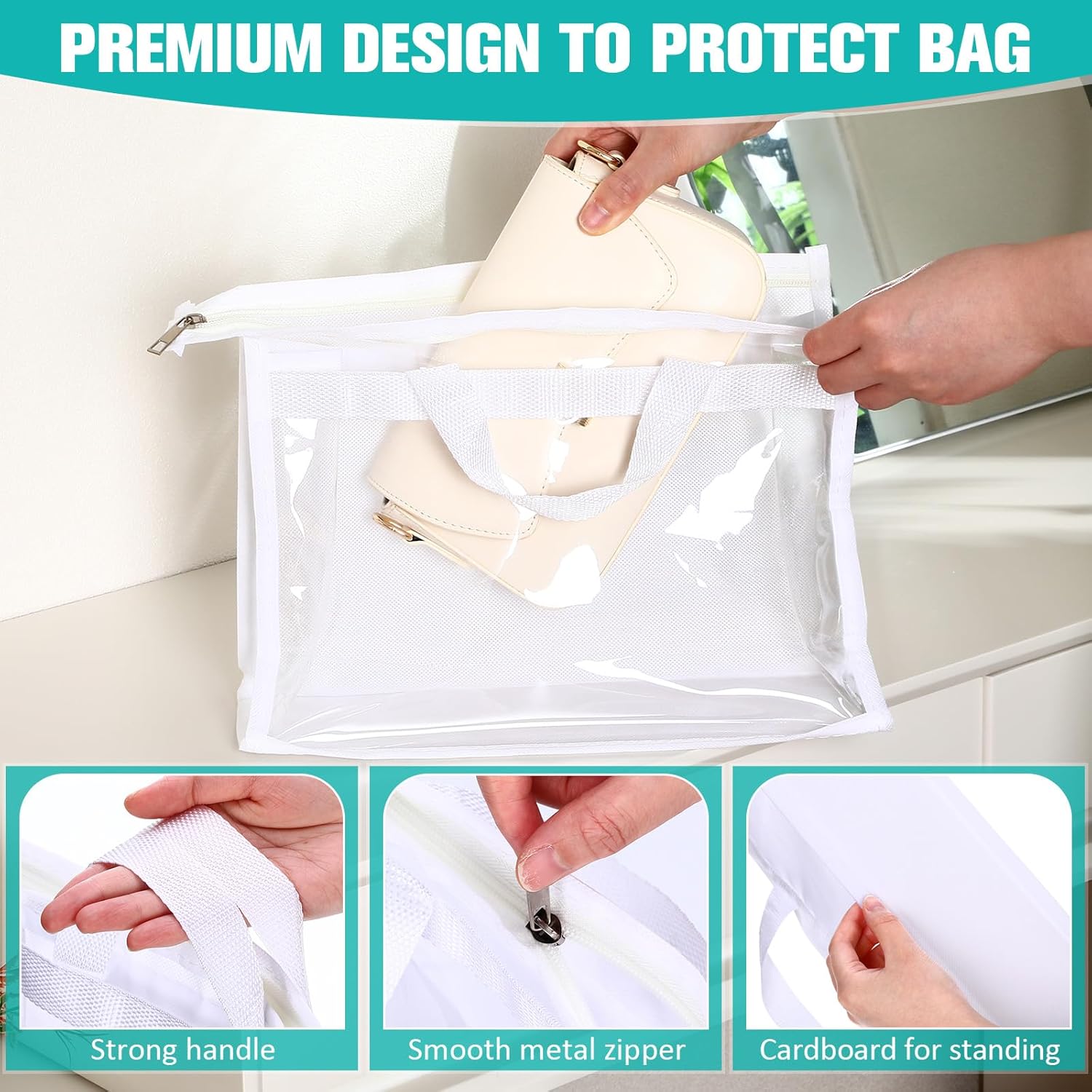 Practical Design: these purse dust bag covers are designed zippers and handles, more convenient to hang when storing, easy to take when moving and effectively dust, and you do not have to open the cover of the storage bag, you can easily recognize your handbag for a clear appearance