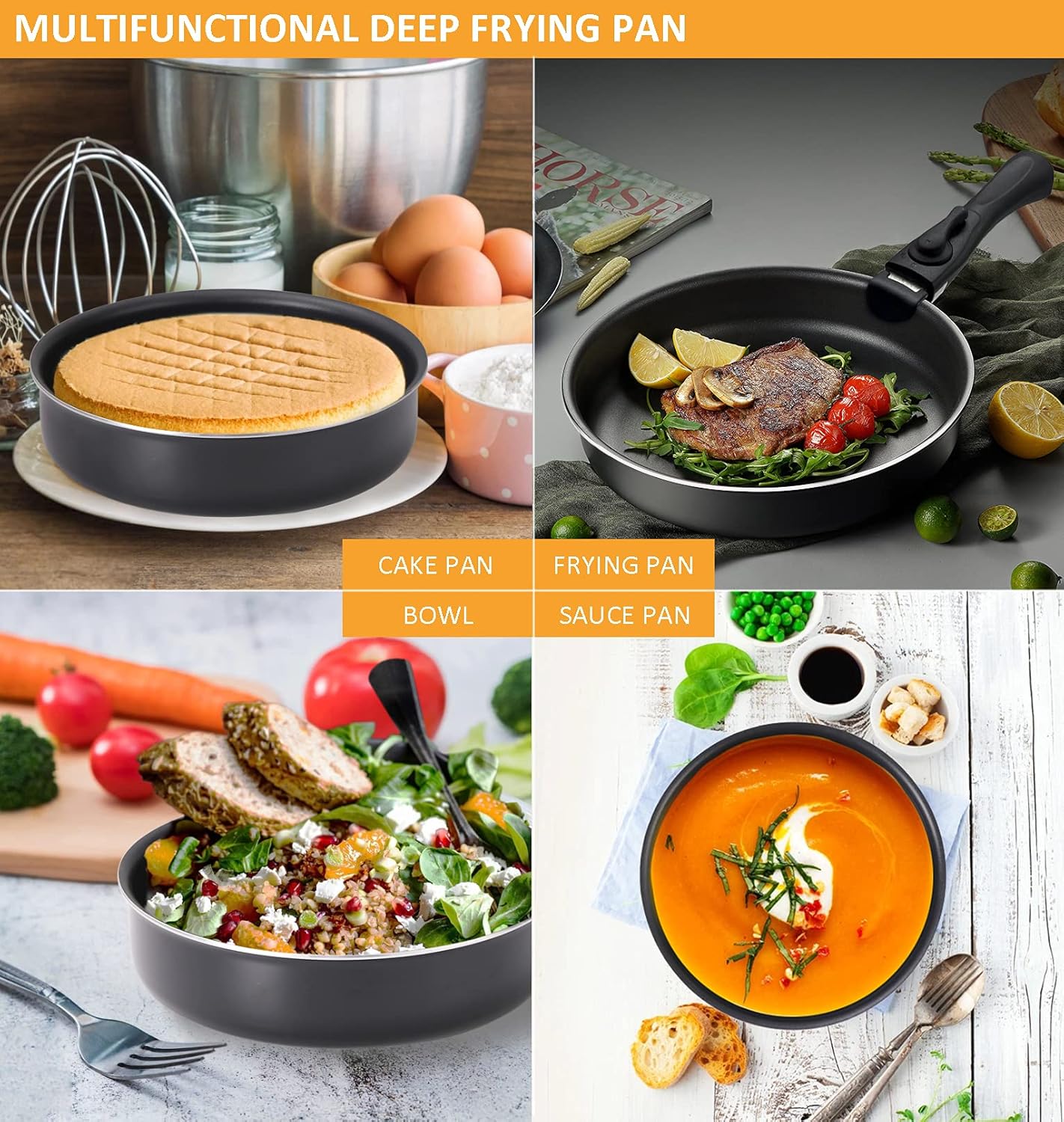 The detachable handle cookware sets not only can be used as frying pan, sauce pan, sauce pot, but also as bowls, plates and cake pan.