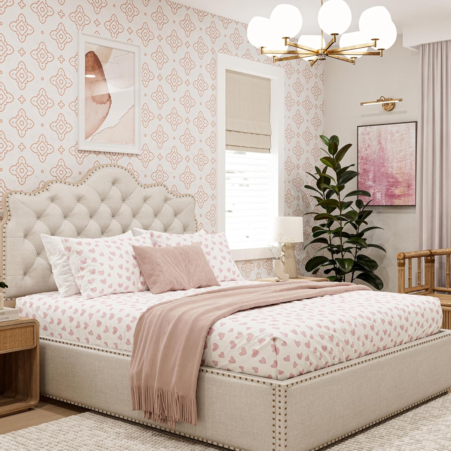 ✅ ULTRA-SOFT & COZY COMFORT – Crafted from premium microfiber, these pink heart bed sheets feel silky smooth, lightweight, and breathable while still providing warmth in cooler months. The fabric resists wrinkles and fading, ensuring a luxuriously soft touch and long-lasting comfort wash after wash.