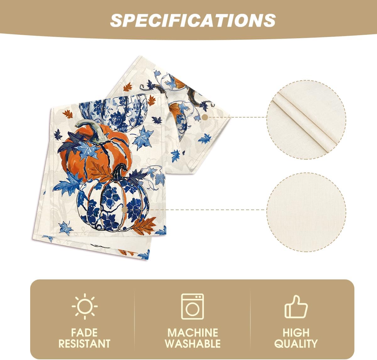 Easy to Clean : Machine wash and lay the table runner flat to dry. Stays the same and as new after every wash. Material: 100% Polyester, no shrink, no fading. Imported, Country of origin: China