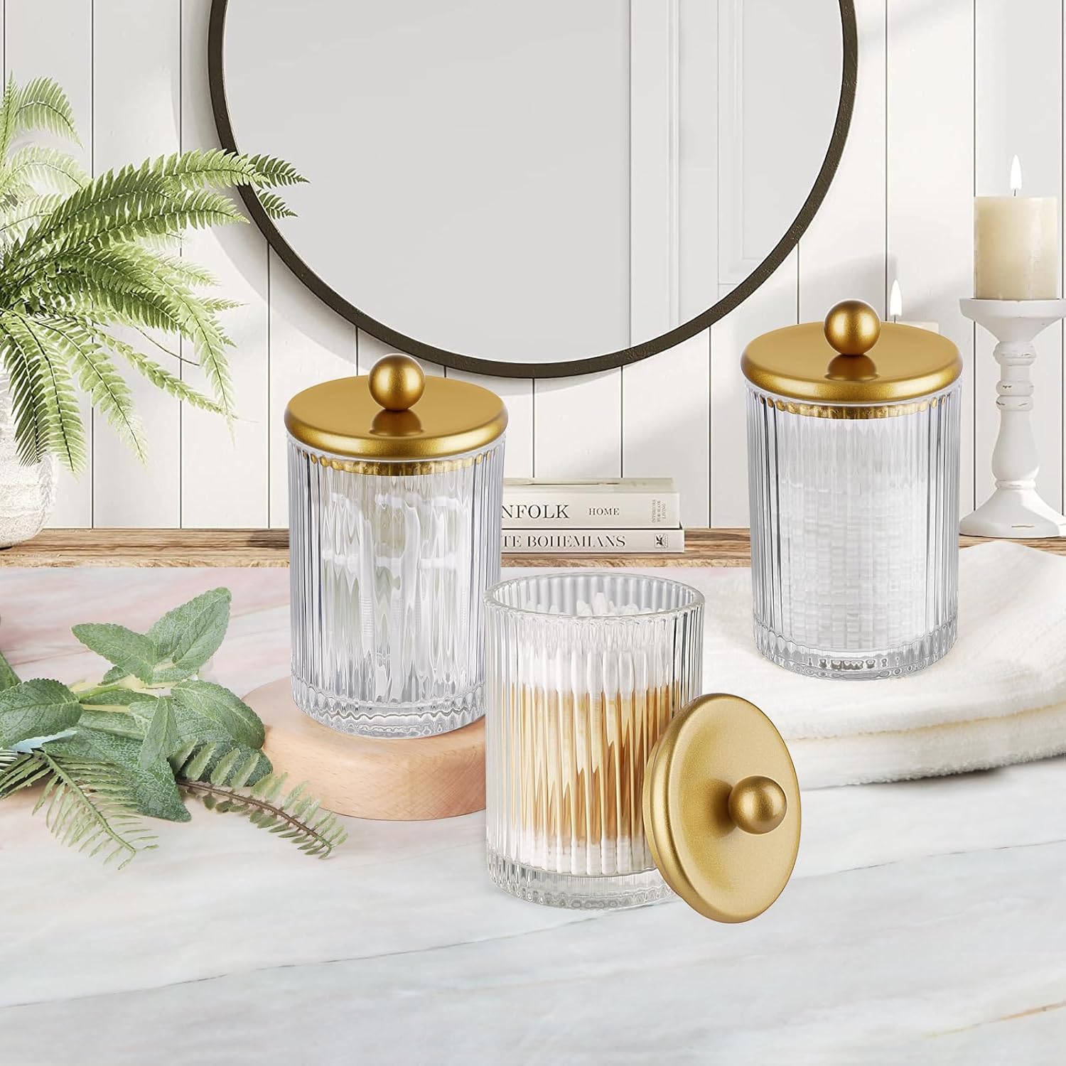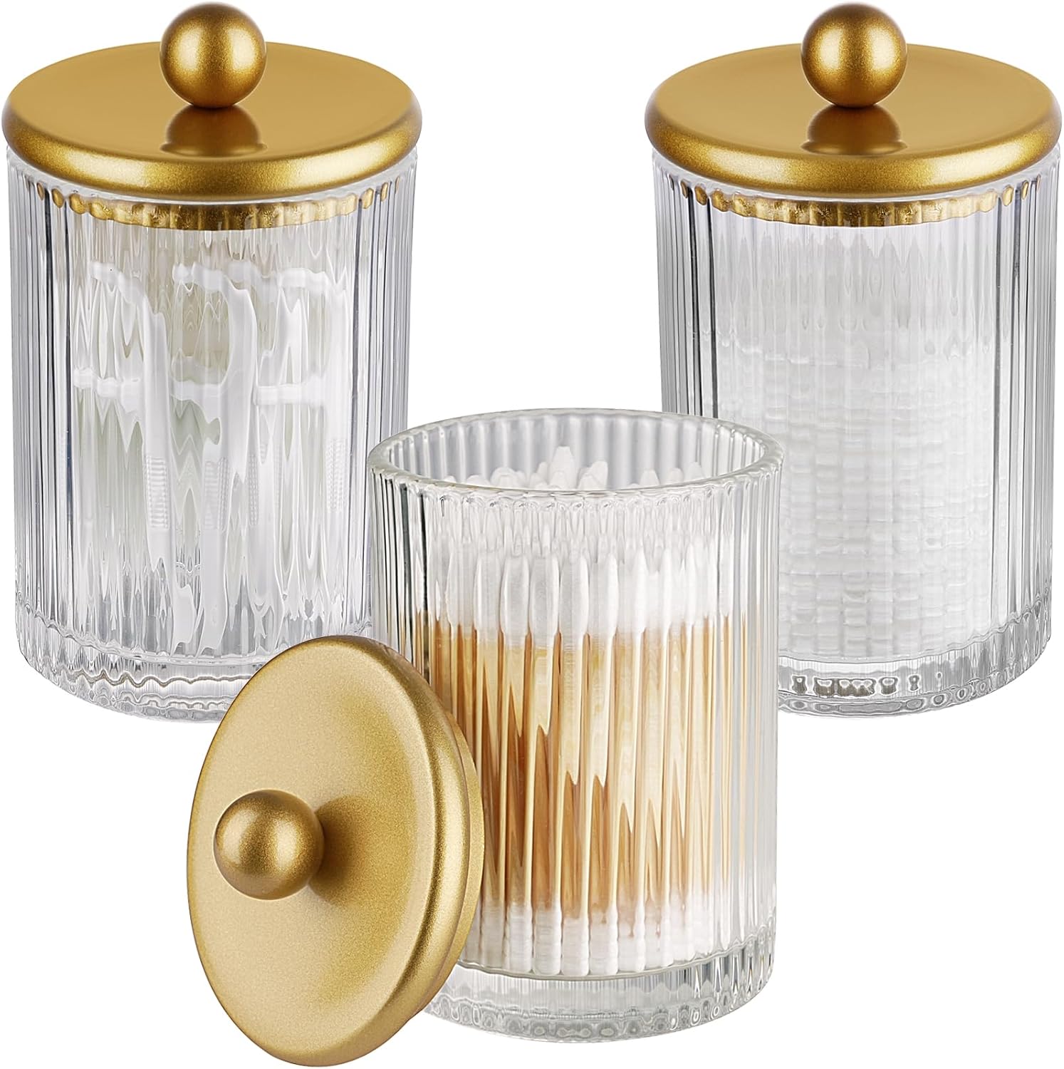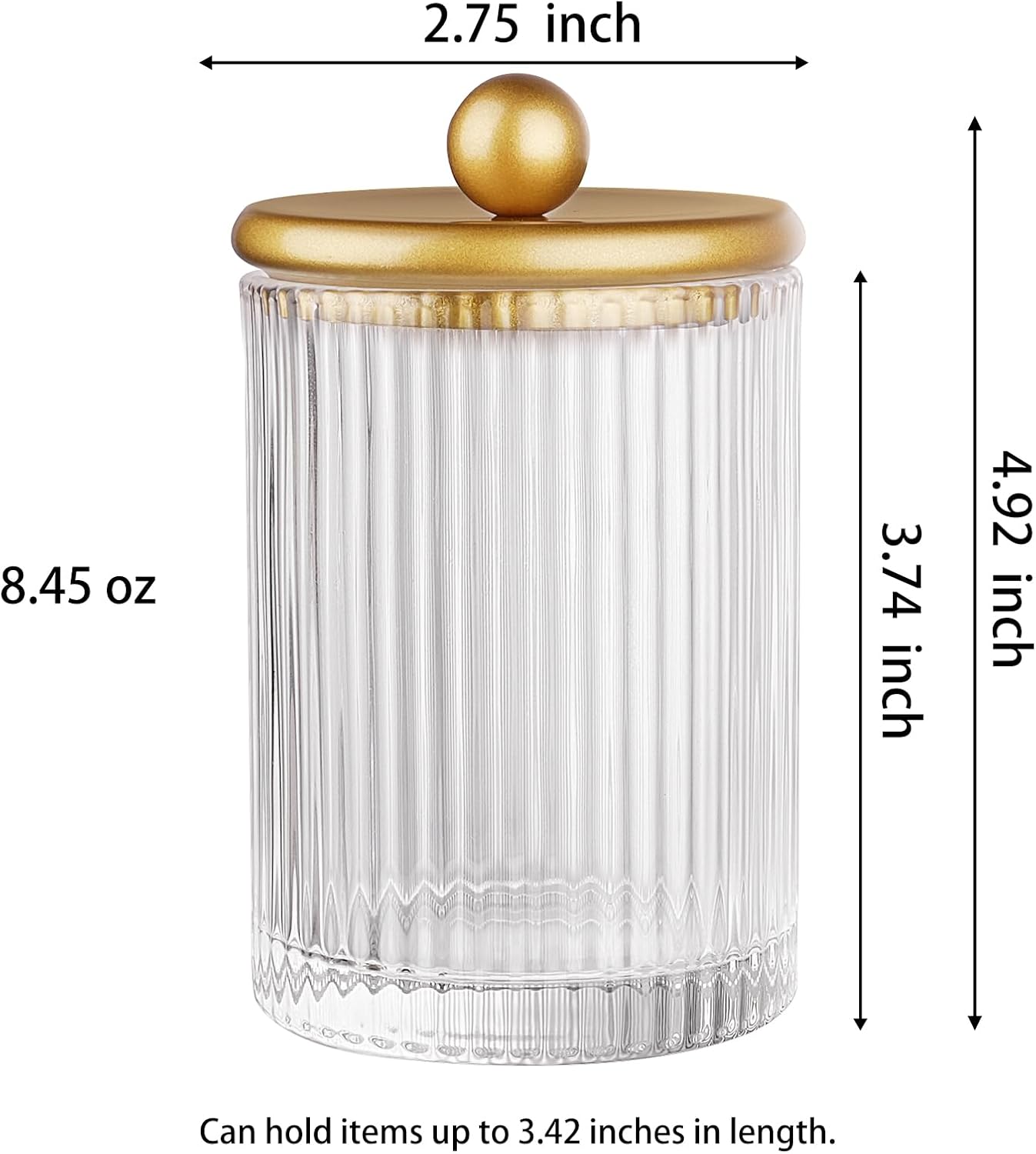 ❤️ Elegant Minimalist Decor- The apothecary jar set will be a fun and beautiful addition to your powder room, bathroom vanity, makeup table and more;This canister is great for storing and organizing cotton swabs, cosmetic sponges, wedges, bath bombs, balls, salts;Organize your hair accessories, clips, elastic bands, bobby pins, bows and more; Use in home office for paperclips, rubber bands, binder clips, and stamps.