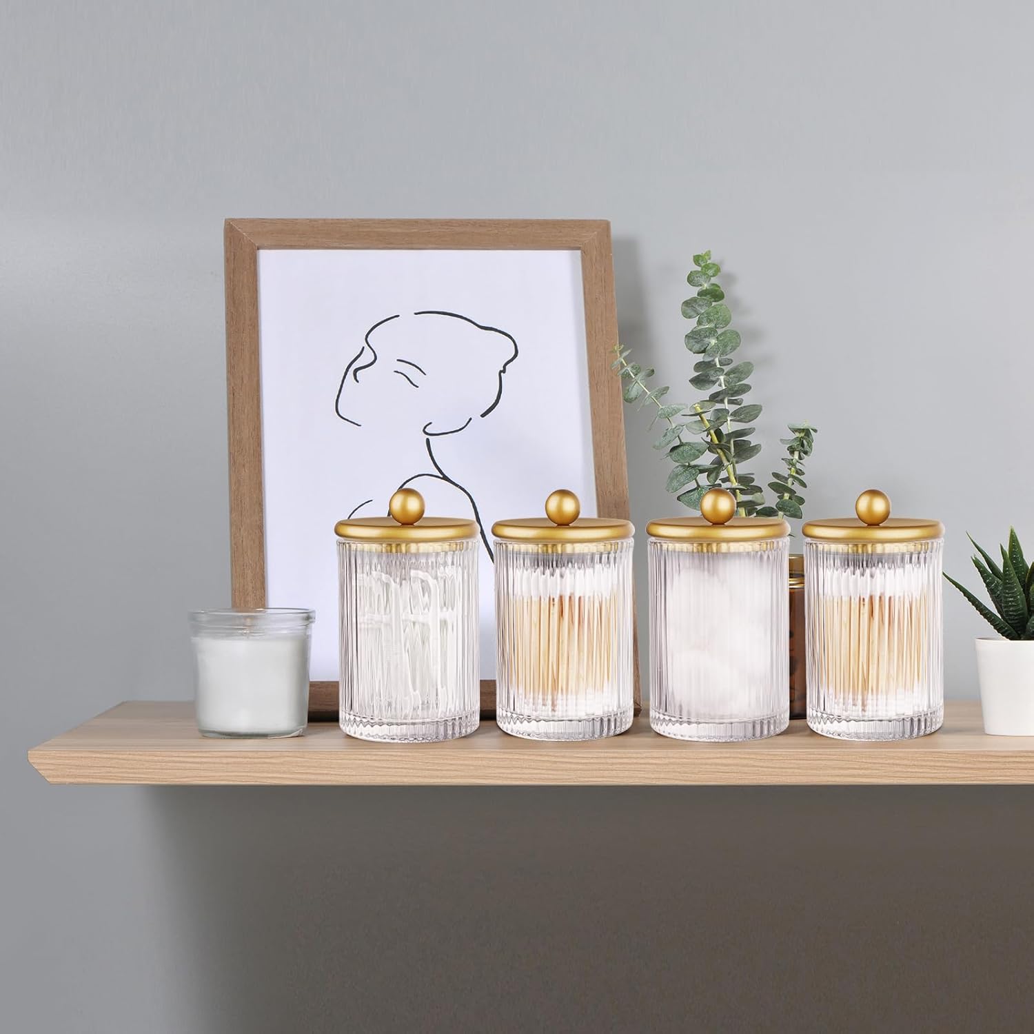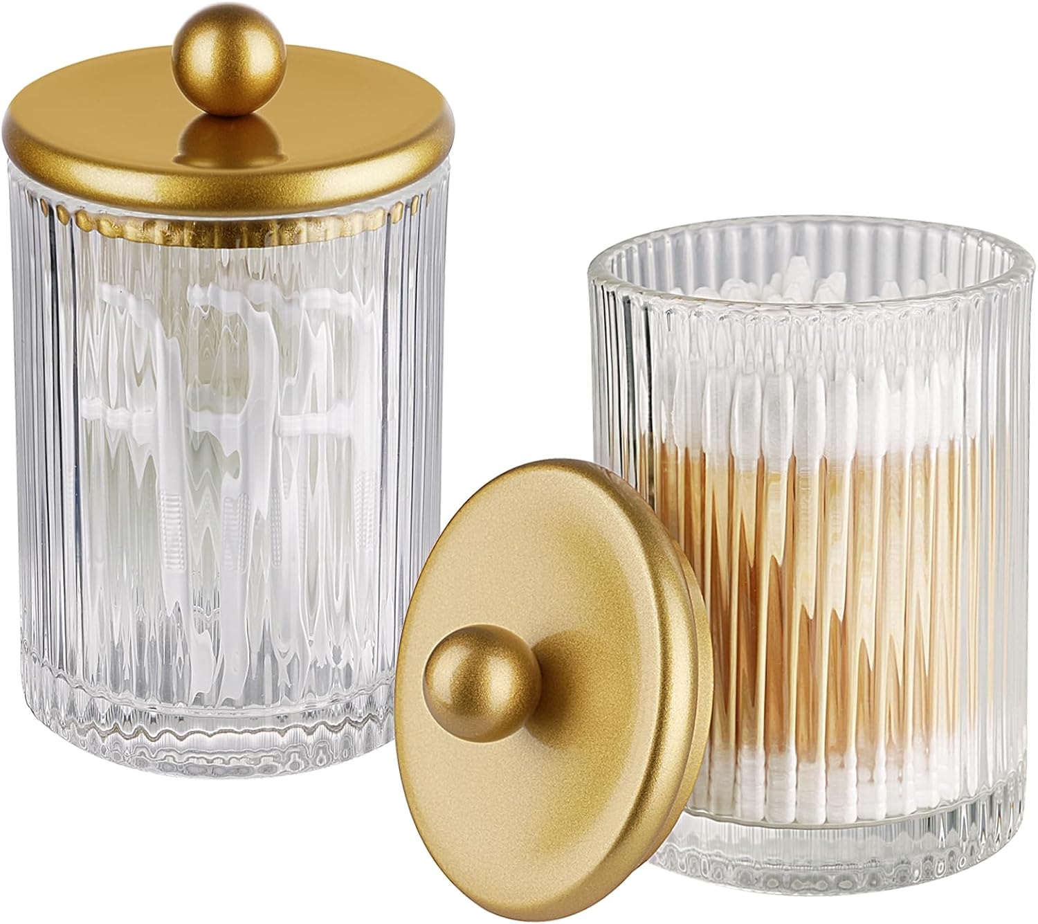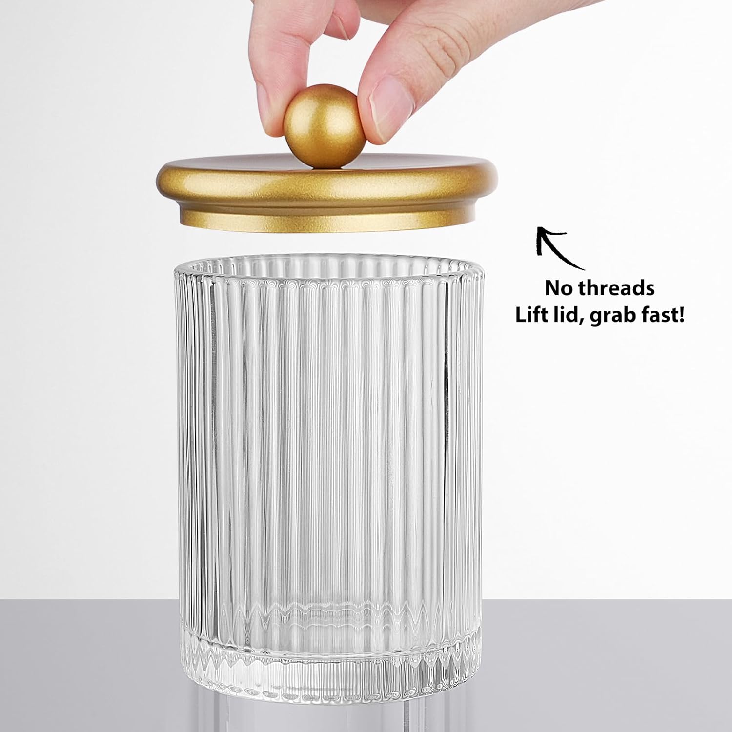 ❤️ Elegant Minimalist Decor- The apothecary jar set will be a fun and beautiful addition to your powder room, bathroom vanity, makeup table and more;This canister is great for storing and organizing cotton swabs, cosmetic sponges, wedges, bath bombs, balls, salts;Organize your hair accessories, clips, elastic bands, bobby pins, bows and more; Use in home office for paperclips, rubber bands, binder clips, and stamps.