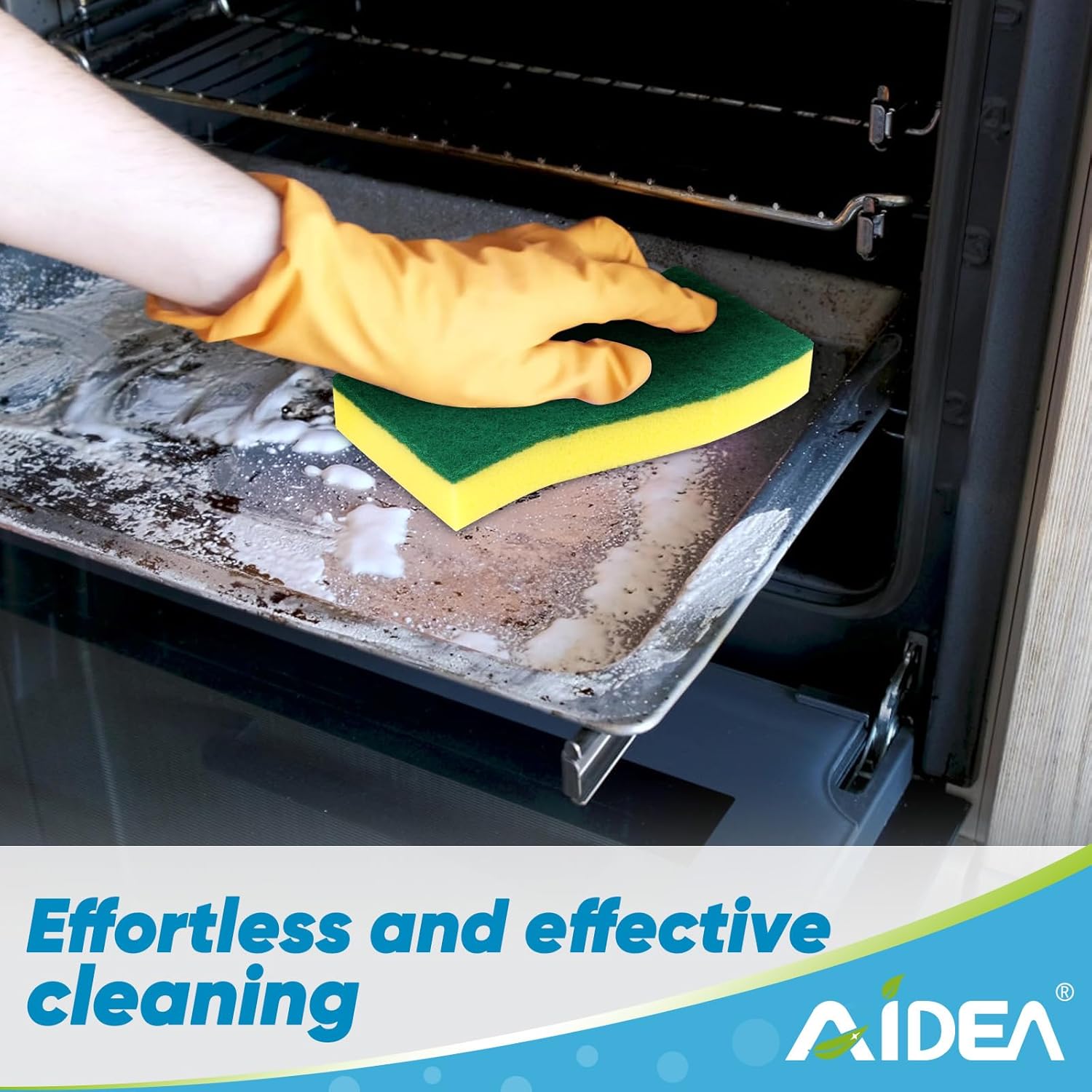 Built to Last: AIDEA XL cleaning sponges feature a scouring pad on one side and an absorbent sponge on the other; resistant to tearing and wear; suitable for removing tough, burned food stains; endure numerous uses