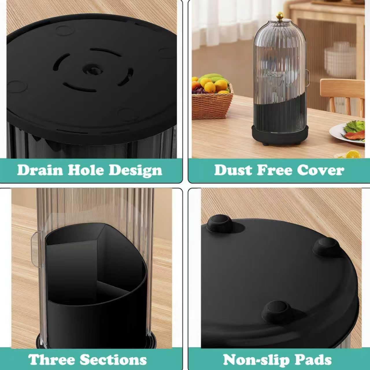 Easy to Use & Clean:The lid can be easily opened and closed for convenient access to utensils. Both the acrylic cover and the inner container are simple to disassemble and wash, keeping your cutlery storage hygienic.