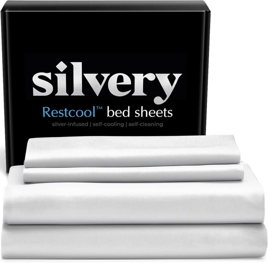 Silvery Restcool™ Silver Infused Bed Sheets Set – Award-Winning Self-Cooling Fabric for Hot Sleepers with Self-Cleaning Silvery Technology™ That Stays Fresh 3X Longer (White, King)