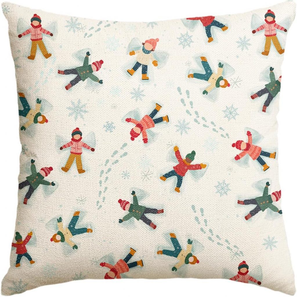 AVOIN colorlife Winter Relaxed People Lying in The Snow Throw Pillow Cover, 18 x 18 Inch Footprint Snowflake Seasonal Holiday Cushion Case Decoration for Sofa Couch