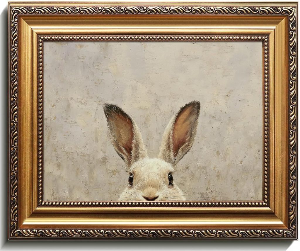 Uniro Vintage Gold Framed Wall Art, Easter Bunny Wall Art Decor, Neutral Rabbit Canvas Oil Painting Poster for Rustic Easter Décor, Vintage Home Decor Animals Artwork Prints Wall Decor for Kids Room, Living Room, Bedroom or Festive Spaces – 9x12inch