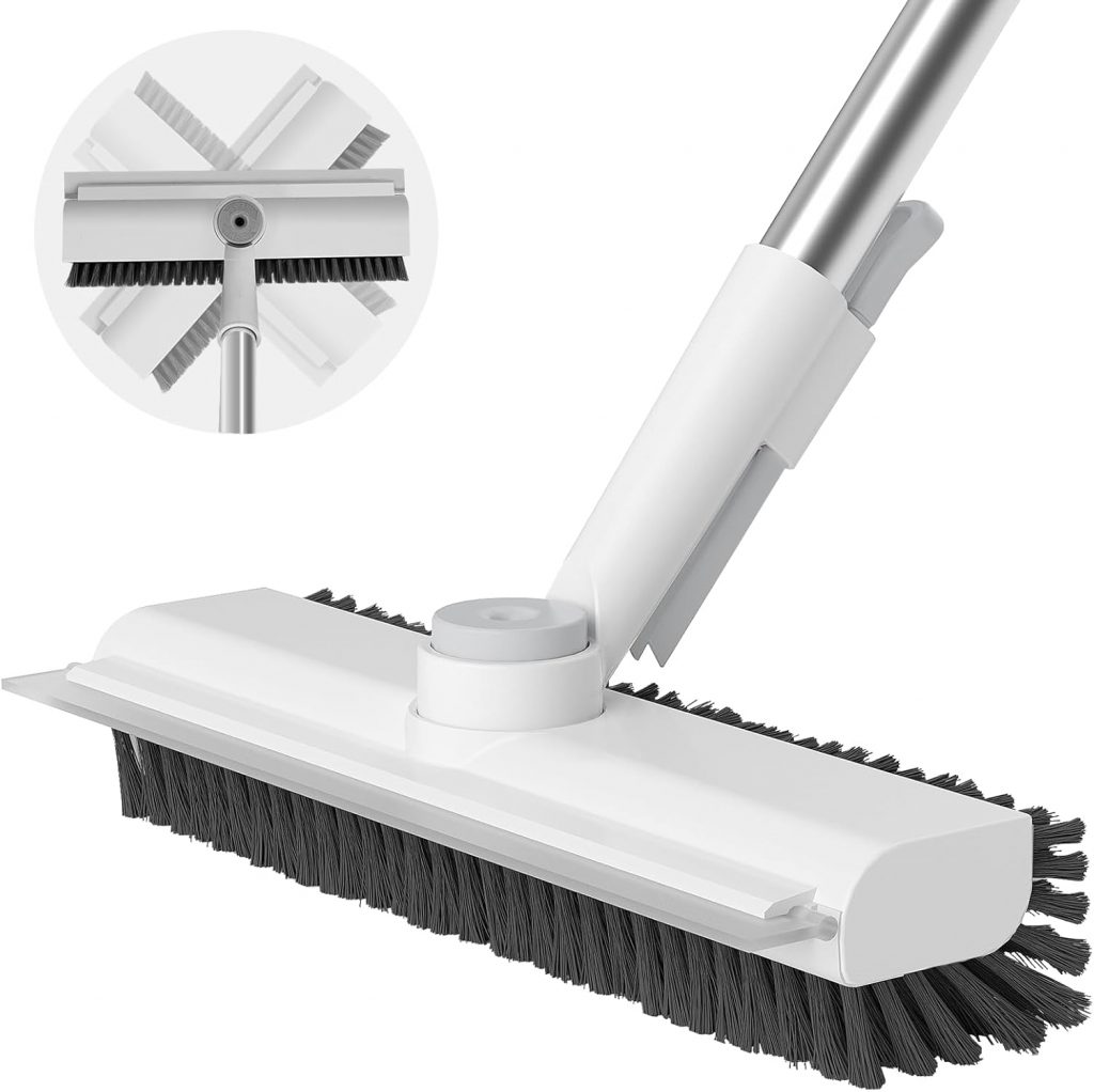 AIR U+ Floor Scrub Brush with Long Handle, 3 in 1 Scrape and Heavy-Duty Stiff Bristle Scrubber Brush for Cleaning Shower Bathroom, Patio, Garage, Kitchen, Wall and Deck