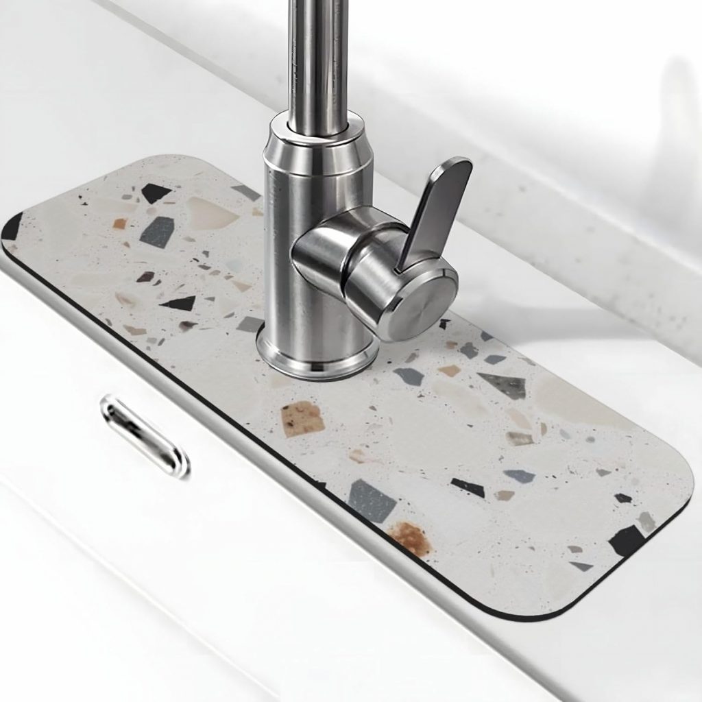 White terrazzo Faucet Mat for Kitchen Sink Splash Guard Super Absorbent Diatomite Fast Drying Faucet Suction Pad, Non-Slip, Washable Sink Mat Gadgets for Bathroom 15 x 5.5 Inch